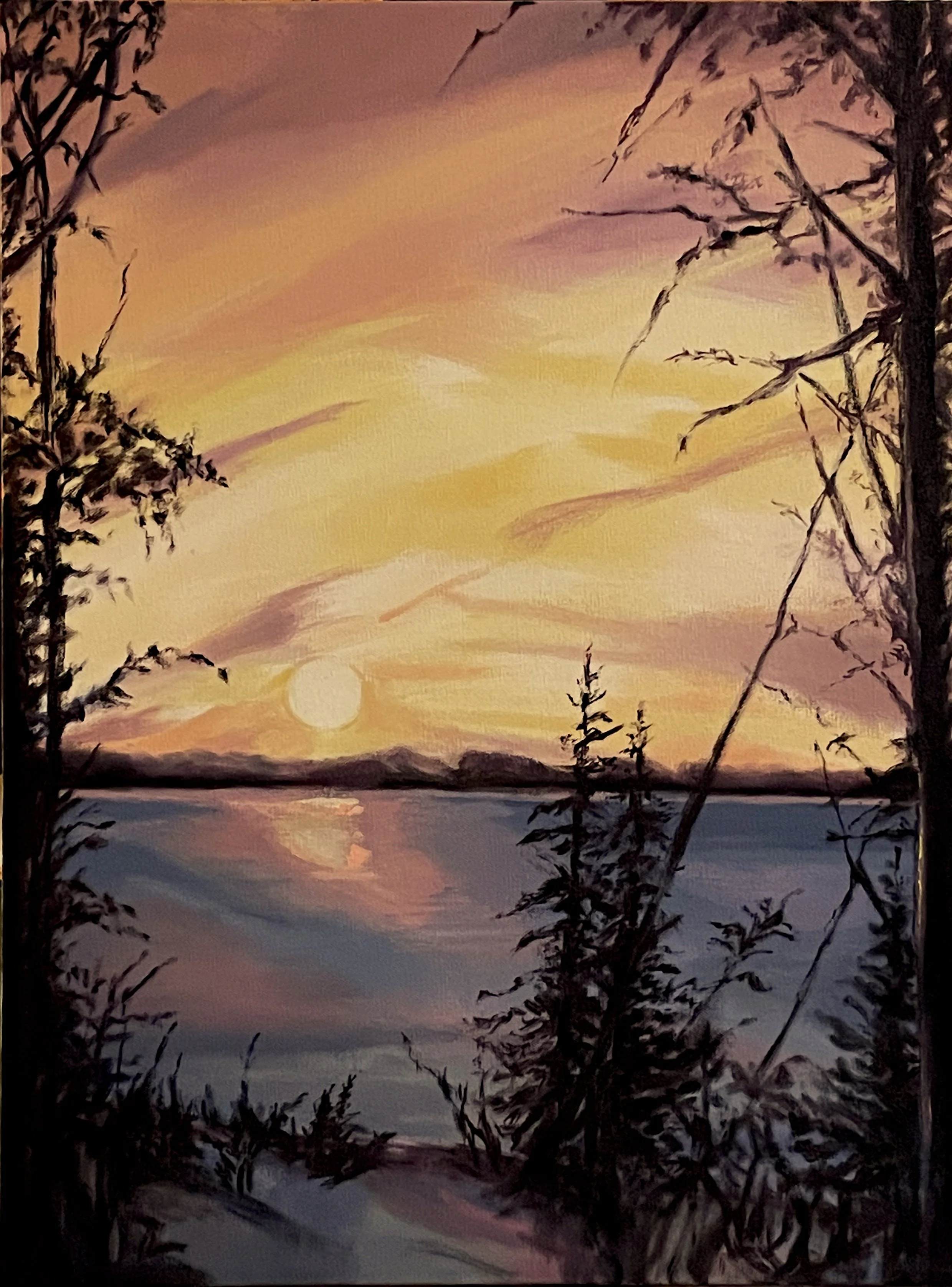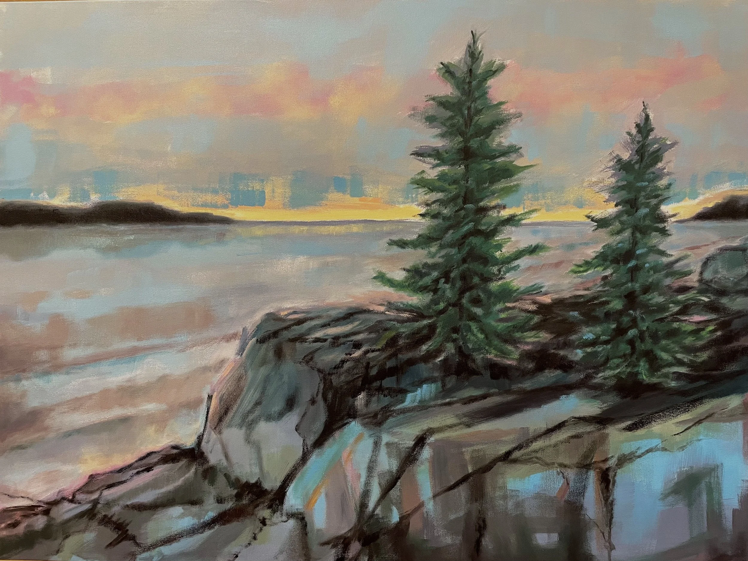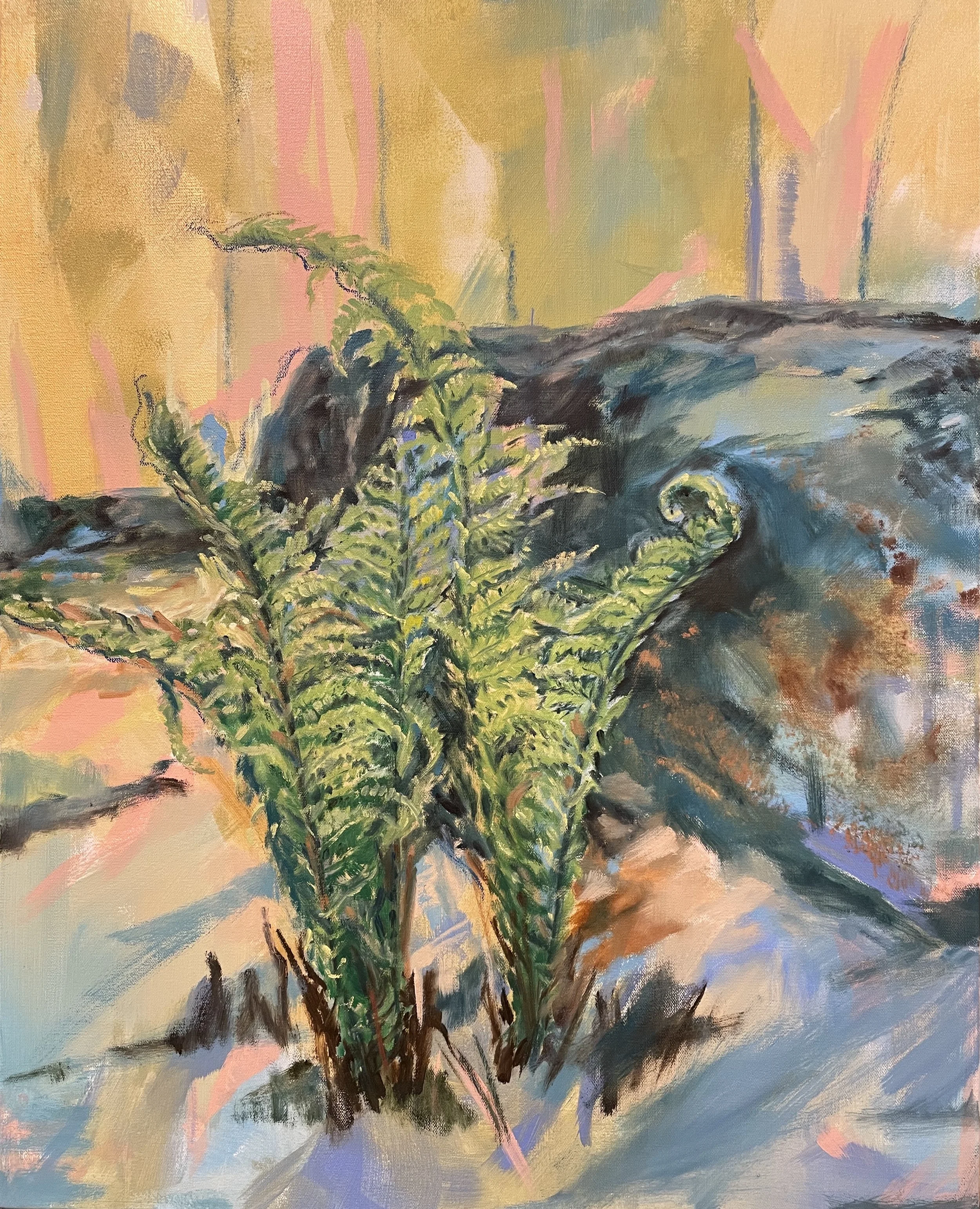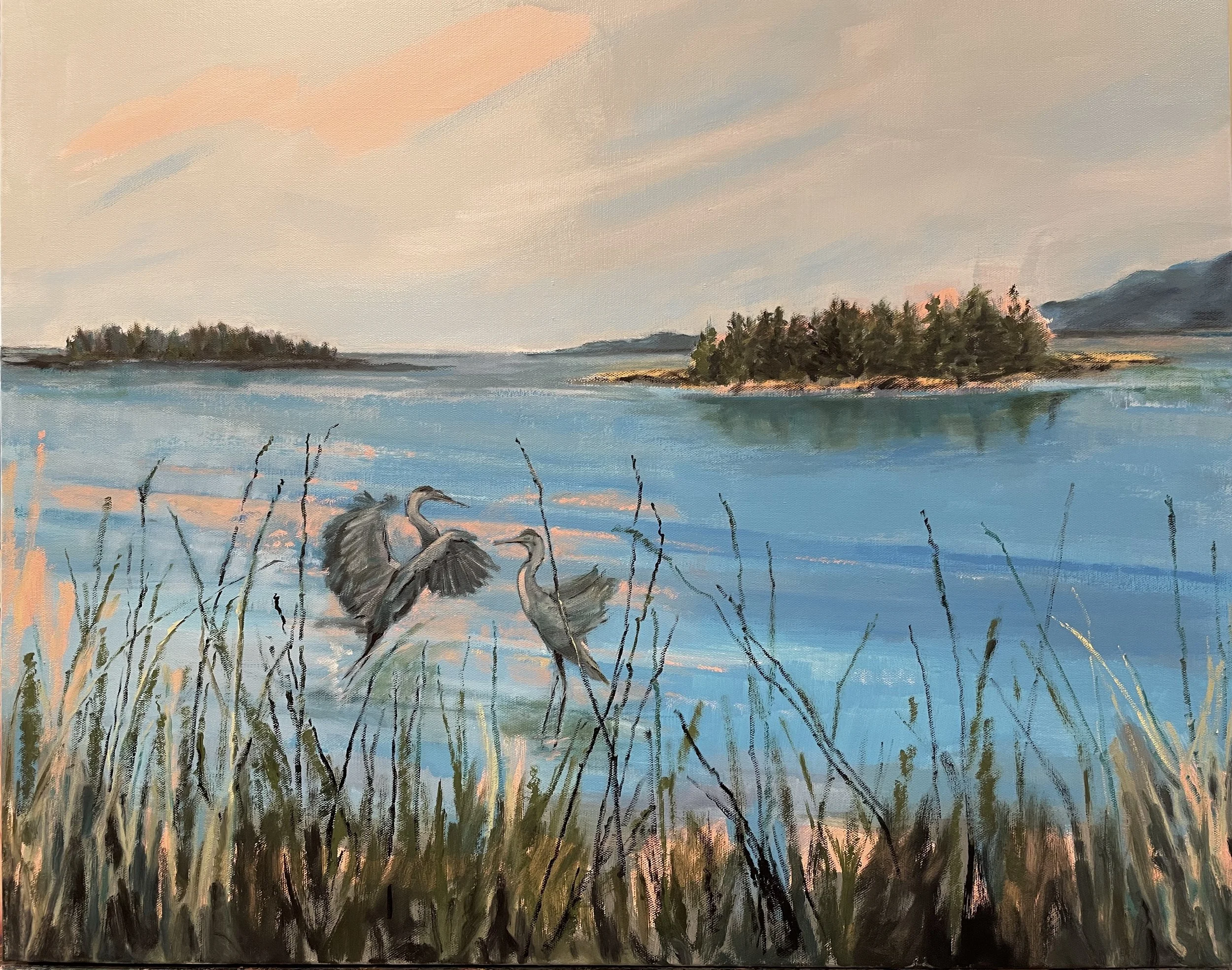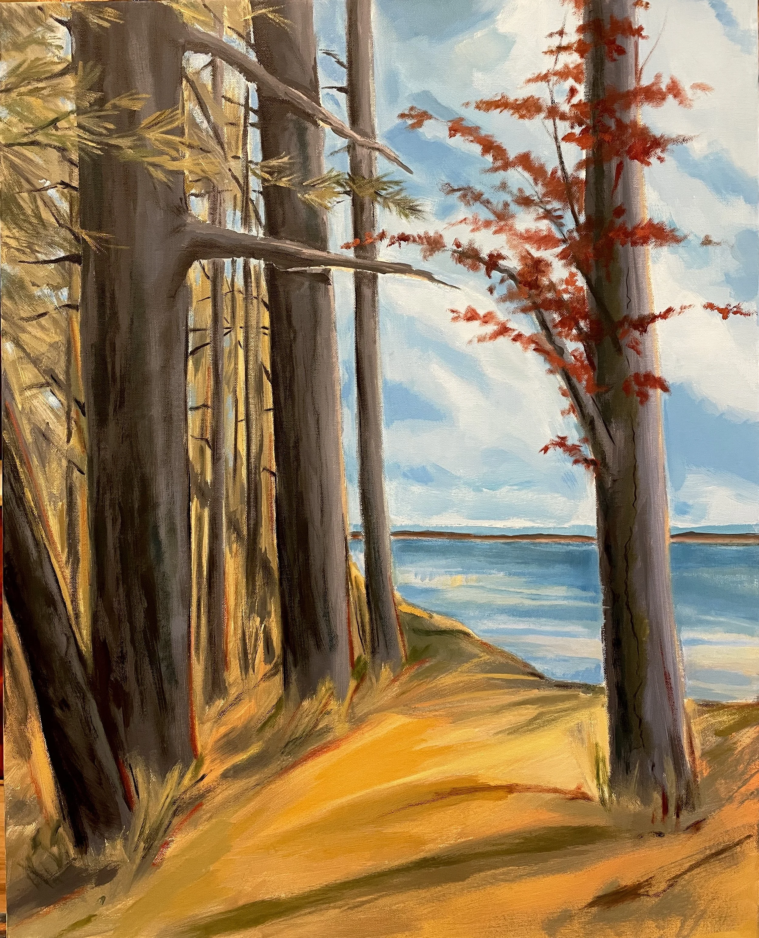 During the pandemic when models were not available to use as references for my figurative paintings, I turned to nature as my subject matter. On long walks I studied the nature around me and found that in many ways, the natural world has achieved what humans long for, but rarely experience; and that is, harmony in relationships. In nature the seasons come and go in sequence and we know what to expect. Birds migrate in autumn and return in the spring. Leaves turn color in the fall, drop from the trees, and new leaves unfurl when the time is right. Tides ebb and flow on a regular basis. The sun sets and the moon rises and the earth continues to turn. There is a security in the understanding of nature’s cycle. Because of this basic stability, there is a harmony within nature. That isn’t to say that drama and tension don’t also occur in nature, but it is often sequential or predictable and it is generally followed by peace and stability. There is a rhythm to the natural world, and the relationships within it.